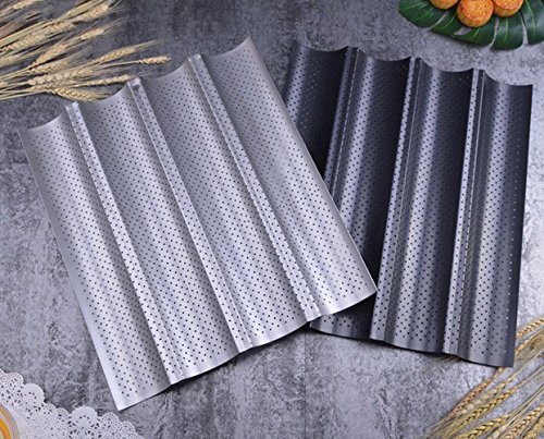 Teglia per pane francese a quattro scanalature, teglia per baguette perforata antiaderente, pane francese e italiano, scanalature, stampo, teglia, pentole, cottura al forno Nero
