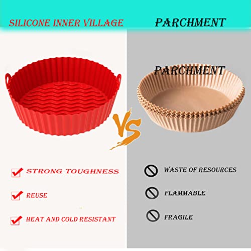 Teglie Friggitrice ad Aria,2pezzi Cestino per Friggitrice ad Aria in Silicone,Accessori per Friggitrice ad Aria in Silicone(Nuovo),per Friggitrice ad Aria,forno ad Aria(20cm) (rosso)