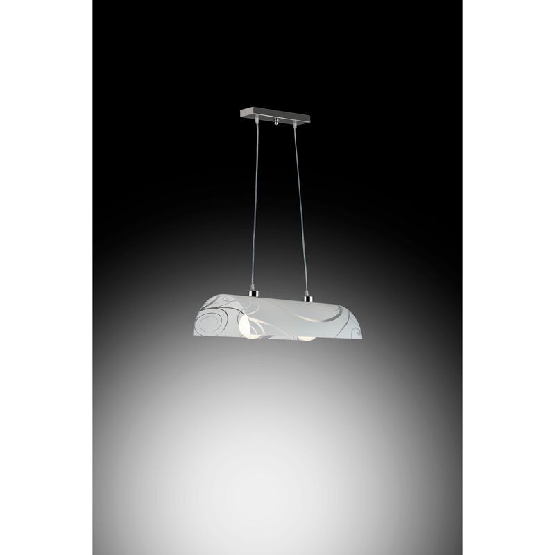 2xE27 Max: 42W. Sospensione Tegola Onda 2xE27 Realizzata in metallo e vetro, dimensioni 60x29x105 centimetri, 2xE27 Max: 42W.
