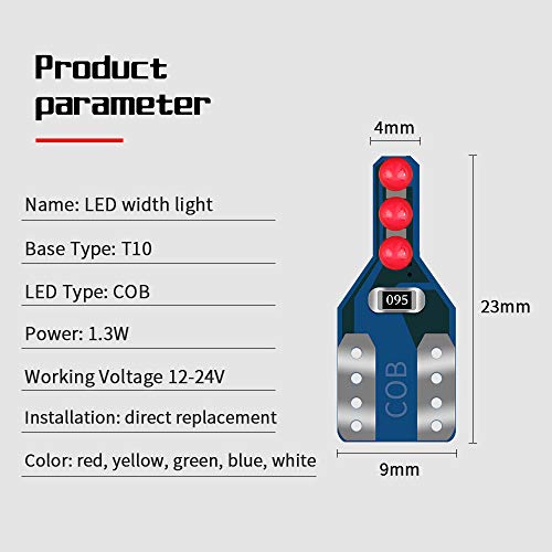 Teguangmei 10XT10 W5W Lampadina LED Rosso Wedge 168 194 Lampadina COB Canbus 6SMD Super Luminoso,Usata per Interni Auto Luce di Posizione a Soffitto per Cruscotto Luce Bagaglio Luce Della Targa,12V