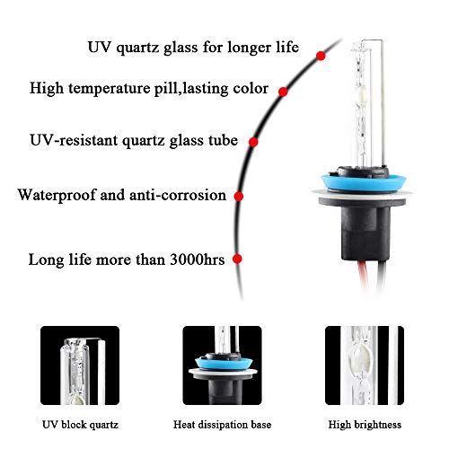 ✔Sostituisci con un nuovo kit di conversione lampadina allo Xeno HID ultra sottile da 55W, compatibile con H11. Basso consumo energetico: alimentatore da 55W, efficienza 3 volte superiore rispetto alle tradizionali lampadine alogene, consumo energetico ridotto del 50%, migliore visibilità e preriscaldamento rapido.