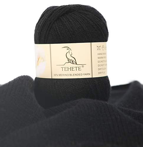 TEHETE Lana Gomitolo, Filati Lana Merino(50g, 250m) per Maglieria e Uncinetto, Ideale per Creare cestini,tappeti, Cuscini, bigiotteria, Nero