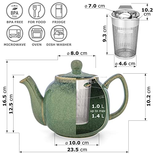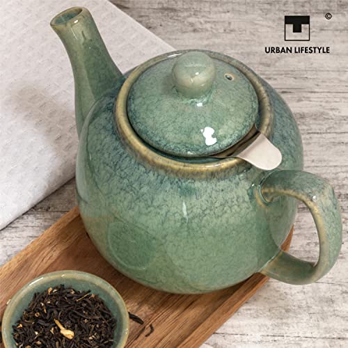 Teiera "Bristol" con glassa ombreggiata smaltata a mano (verde marino) di URBAN LIFESTYLE per 4-6 tazze, il manico è protetto dal calore e rimane freddo, teiera con infusore, teiere