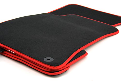 Colore: nero/rosso, perfettamente sagomato, confezione da 4 pezzi, fissaggio con bottoni automatici originali Audi.