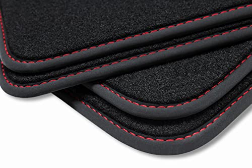 Teileplus24 BV562 Tappetini in velluto per VW T5, T6, T6.1 2003- con piastra per i calci, Cucitura:Rosso Velluto premium arancia