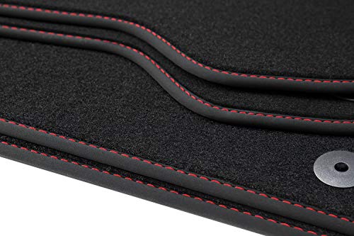Teileplus24 V253 Tappetini in Velluto per VW Passat B5 3BG 1996-2005 con Piastra per i calci, Cucitura:Rosso