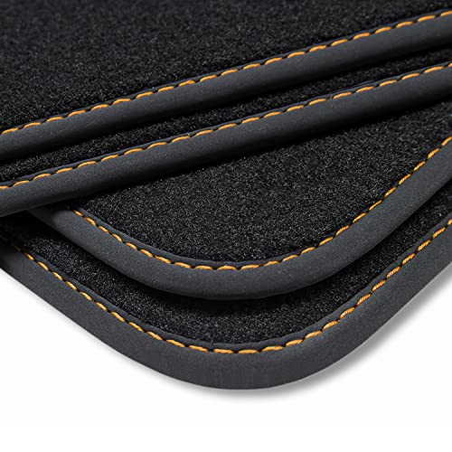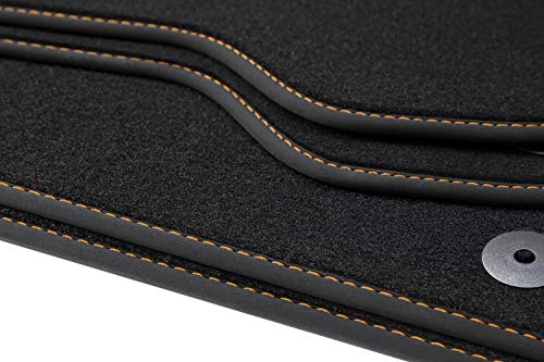 Teileplus24 V341 Tappetini in velluto per Seat Arona 2017- con piastra per i calci, Cucitura:Arancione