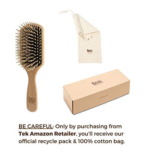 TEK- Spazzola Rettangolare con Dente Lungo in Legno di Frassino, Handmade in Italy, per Capelli Lunghi, Molto Lunghi, Folti e Lisci, Districante e Massaggiante