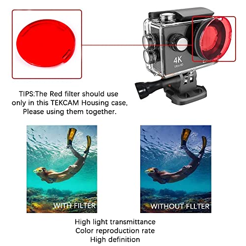 ★NOTA: si consiglia di eseguire un test impermeabile prima dell'uso della custodia. L'articolo include 2 confezioni di filtri rossi, il filtro rosso dovrebbe essere utilizzato solo nella nostra custodia impermeabile tekcam.