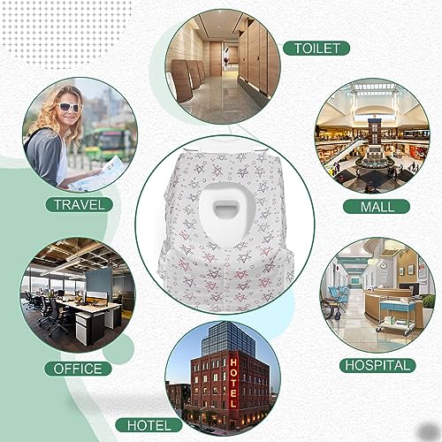 。◕‿◕。【Portatile & Facile da Usare】: Basta aprire la confezione e fissarlo alla tavoletta WC con l'adesivo. Il copriwater monouso da viaggio, una volta che hai finito i tuoi bisogni, puoi gettarlo nella pattumiera. Il pacchetto leggero e compatto si adatta comodamente a qualsiasi borsa o tasca, così puoi portarlo in viaggio, in campeggio e altro ancora