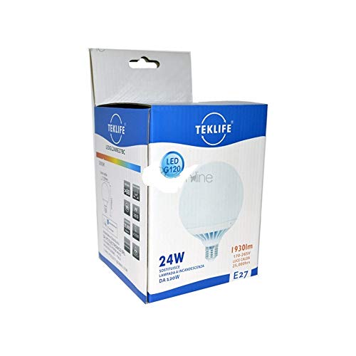 Teklife lampada lampadina sfera palla globo 24w led g120 luce fredda e27 6000k