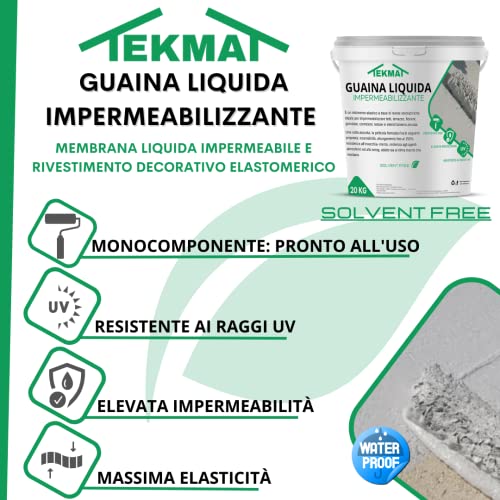TEKMAT-GUAINA LIQUIDA IMPERMEABILIZZANTE MONOCOMPONENTE VARI COLORI DA1-6-20 KG (20 KG, VERDE)