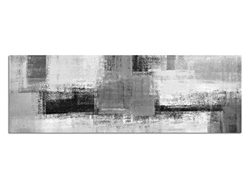 Tela da parete, panorama, stampa su telaio, nero/bianco, 150 x 50 cm, dipinto astratto, grigio/ giallo/ bianco