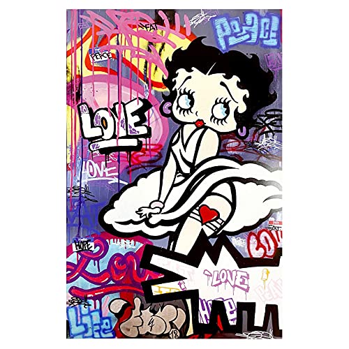Tela stampata Graffiti Betty Boop Wall Art Street Cartoon Girl Poster Stampa Immagine da parete Soggiorno Decorazione della casa 20x30 cm Cornice interna