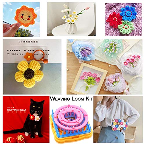 Telaio del Fiore Kit per Realizzare Fiori Diverse, Kit per Telaio per Maglieria Rotondo/Quadrato - con Ago (Telaio per fiori + Pom Maker + Filato + Forbici)
