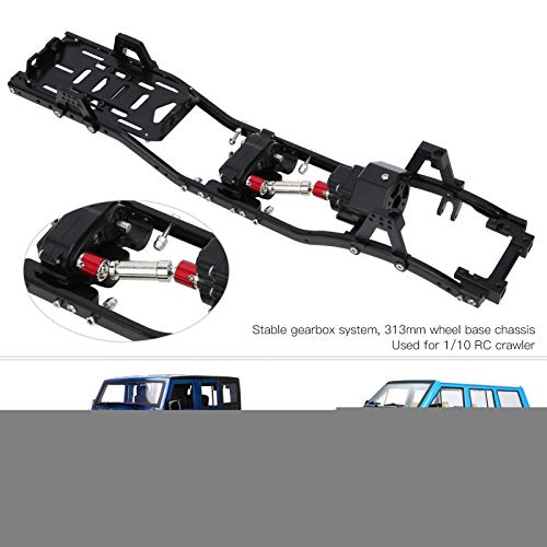 Telaio in Metallo con interasse 313 mm, Telaio in Metallo con interasse, Scatola Ingranaggi Anteriore in Metallo 923g Argento/Nero per Axial SCX10 II 1/10 Crawler RC Car(Black)