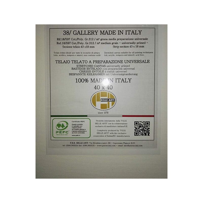 Linea basic 597 Serie Media Dimensione: 500 x 500 mm Tela rimboccata e graffettata sul retro Cotone e poliestere Grana media Graffettato sul retro per offrire la possibilit?½ di dipingere anche sui lati ed evitare l'uso della cornice Certificato PEFC