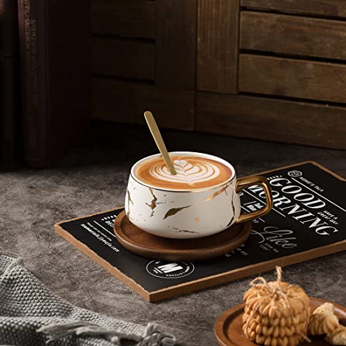Set con piattino in un'elegante confezione regalo. Il set da caffè è ideale per persone singole o per coppie, come regalo per amici o parenti Le tazze da caffè con struttura marmorea si abbinano bene a tutte le decorazioni casalinghe.