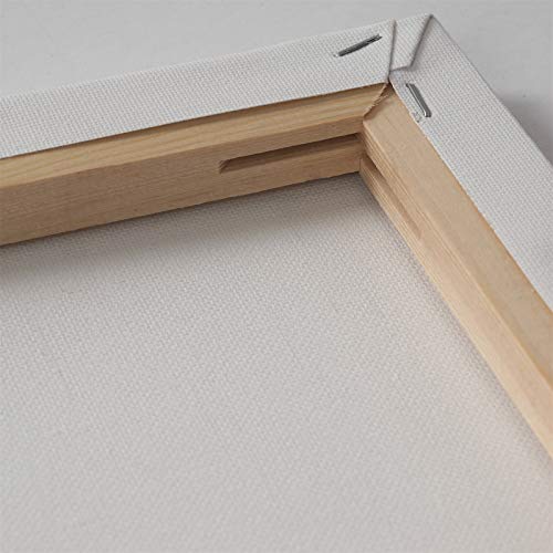 Telaio di legno selezionato, con 8 chiusure in legno per far risaltare la tela, tela fissata sul retro.