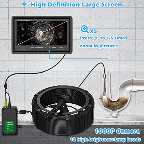 【Schermo a Colori da 9" con microfono Incorporato】Schermo HD LCD a colori TFT da 9 pollici per un'esperienza di visione più ampia, questa telecamera per fognature è progettata con funzione DVR, la scheda Micro SD da 16 gb è inclusa nel pacchetto. lo schermo è dotato anche di microfono e altoparlante, in modo da poter contrassegnare i problemi del tubo con l'audio durante la registrazione di un video, è possibile disattivare questa funzione, i dettagli si prega di fare riferimento al manuale.
