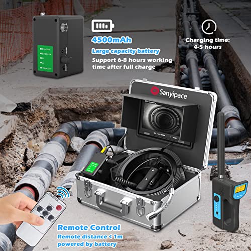 【Batteria 4500mah e Telecomando 】La endoscopica per l'ispezione dei tubi di scarico è dotata di una batteria ricaricabile agli ioni di litio da 12V 4500mAh (con visualizzazione dello stato della batteria). È comodo da usare all'esterno. Richiede 3-4 ore per una carica completa e può essere utilizzato per almeno 6 ore dopo una carica completa. La telecamera per tubi è inoltre dotata di un telecomando che puoi utilizzare per scattare foto, ingrandire le immagini e accendere/spegnere lo schermo.