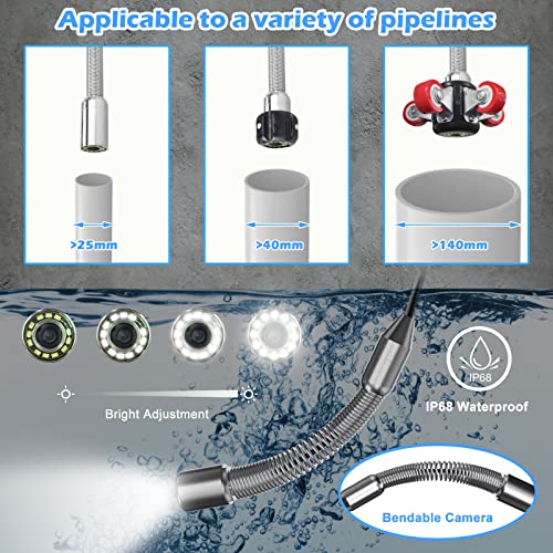 【30/50m Bobina di Cavo Opzionale】 Abbiamo 30 o 50 metri di cavo per la telecamera di ispezione delle fognature. il cavo in fibra di vetro semirigido da 4 mm di diametro è abbastanza resistente da spingere la sonda della telecamera ad avanzare nel tubo. la bobina di cavo aiuta a organizzare e conservare facilmen