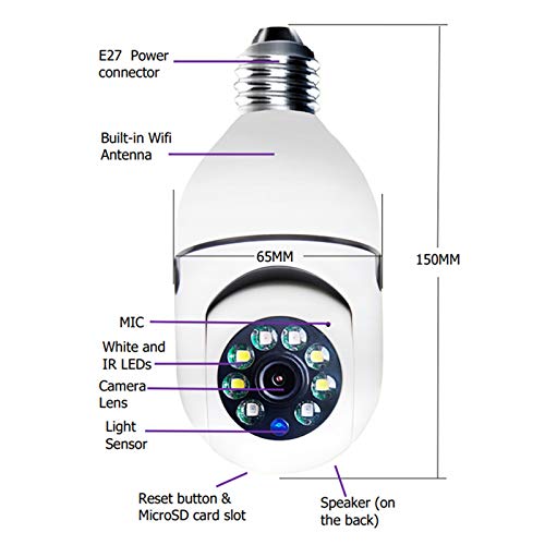 ★ Installazione facile e veloce, può essere installata come una normale lampadina E27. Incredibile 2MP Full High Definition. Va bene anche installare la telecamera capovolta. Basta ruotare di 180 ° nelle impostazioni dell'app, otterrai una visualizzazione corretta dell'immagine sull'app.