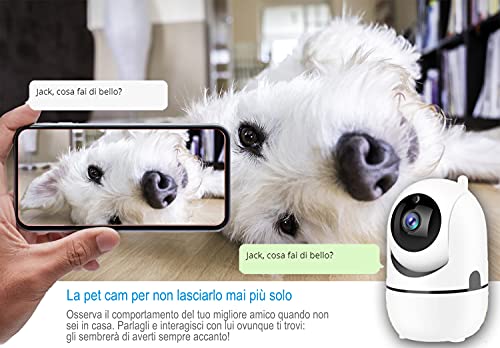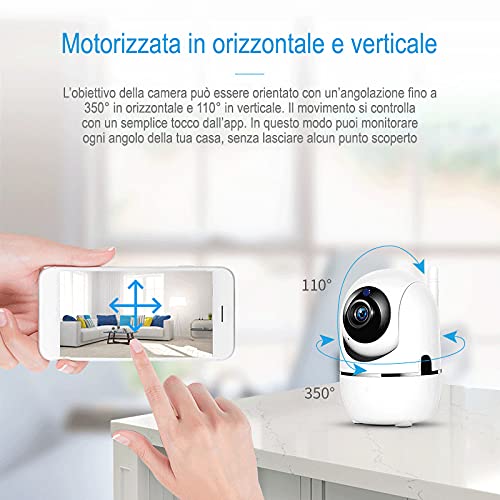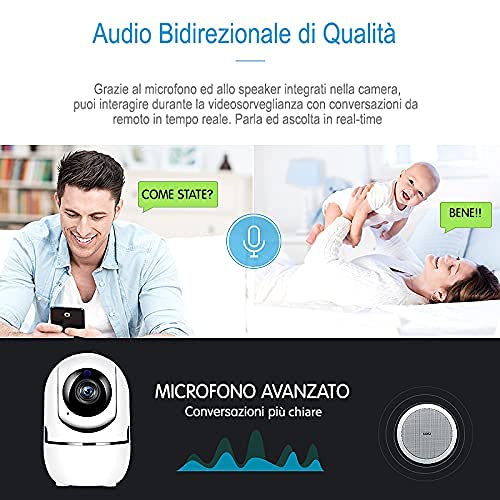 Telecamera Motorizzata Wi-Fi, Mini videocamera sicurezza interno registratore 360 gradi, 1080P, ipcamera Infrarossi, Sensore di Movimento lunga distanza, Audio a due vie, Controllo neonato tramite app