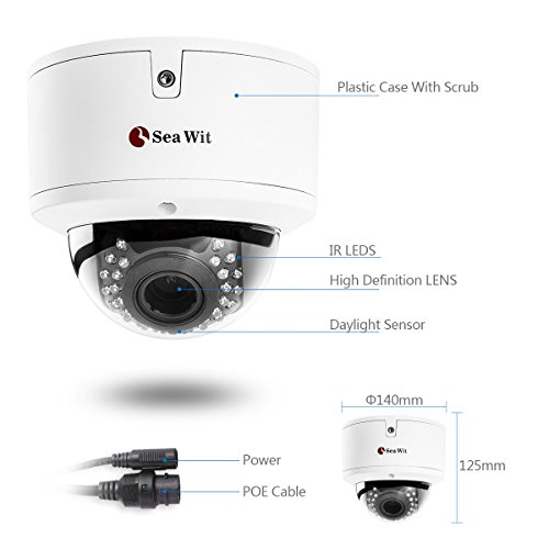 Sea Wit Telecamera IP POE con obiettivo ottico zoom ottico 4x, risoluzione di 5MP (2592 x 1944), visione notturna, rilevazione di movimento, spina e riproduzione, per sorveglianza domestica CCTV Home / Outdoor