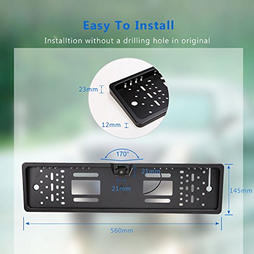 Telecamera Posteriore Di Auto Pagina Della Targa, 170 ° HD CMOS Targa Telecamera per La Retromarcia Per Veicoli Europei con 16 LED, Impermeabile IP68, Visione Notturna e Antiurto (16 LED, Nero)