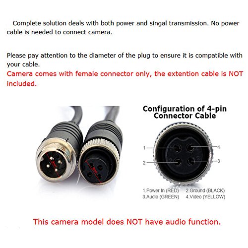 Ampio campo di applicazione: 12 V-24 V DC gamma di alimentazione per adattarsi alla maggior parte dei veicoli. Migliore fotocamera per retrovisione per auto, autobus, camion, veicoli commerciali, mini-van, grandi sistemi o furgoni ecc.