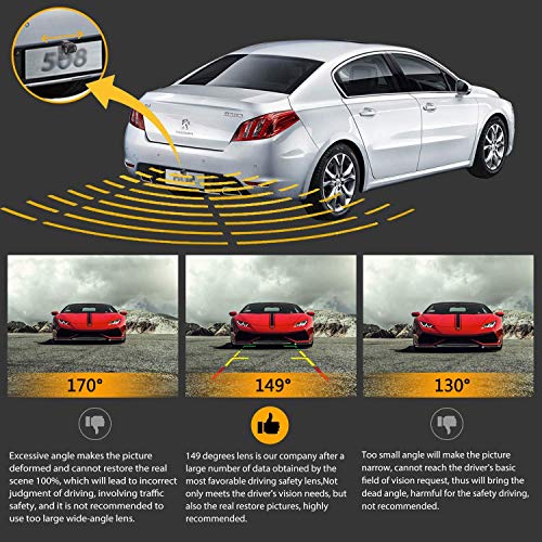 ►Incredibile design ad ampio angolo: 150 - 170 ampio angolo di visione offre una visione più ampia per la sicurezza e uccide tutti gli angoli ciechi e visione notturna si abbina alle luci del vostro veicolo. Non c'è bisogno di praticare fori per l'installazione della staffa. La staffa nascosta non copre alcuna informazione sulla targa.