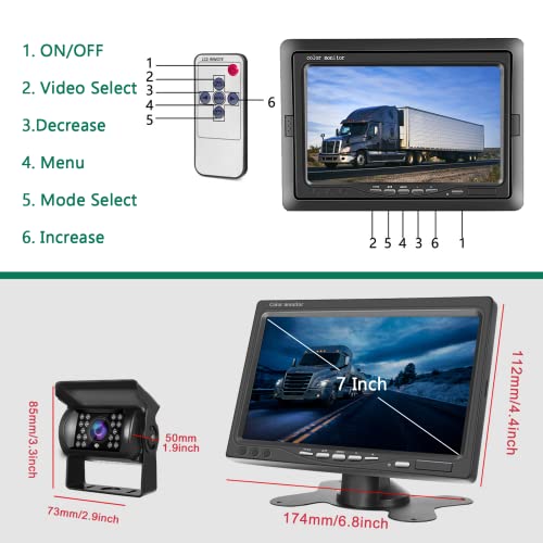 【Imballaggio e assistenza】Questo kit di telecamere di retromarcia include 1 x 7 "Car Monitor + 1 x Backup Camera + 1 x 65ft Aviation Connector Video Cable +1 x Remote Controller +1 x Staffa di montaggio +1 x Two-sided Adhesive Tap +1 x User Manual. Se hai domande quando usi il nostro prodotto, ti preghiamo di contattarci via e-mail e faremo del nostro