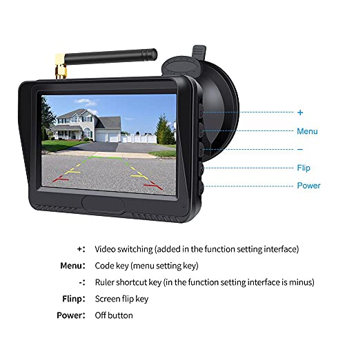 Kit Telecamera Retromarcia Wireless, 4.3" HD Display Digitale, Telecamera Visione Notturna Impermeabile IP68 con Staffa Lunga, Sistema Retromarcia 12/36v Adatto per Camion, Auto, Minivan
