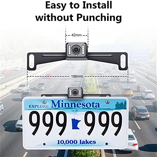 TELECAMERA PER LA VISIONE NOTTURNA IMPERMEABILE: la telecamera posteriore impermeabile IP68 può essere installata sulla targa (con staffa lunga), antipolvere e antiurto, con ampio angolo di visione di 170 ° e funzione di visione notturna a LED, e ha buone prestazioni durante il giorno e la notte.