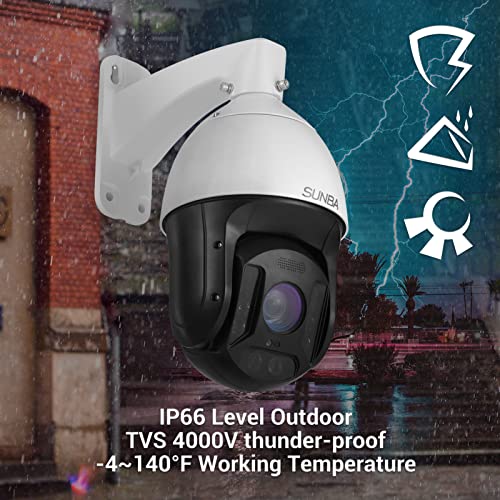 Telecamera di sicurezza SUNBA PoE+ PTZ per esterni, zoom ottico 25X 1080p@60fps Dome Telecamera di sicurezza, visione notturna a infrarossi a lungo raggio fino a 300 m (P625, serie Performance)