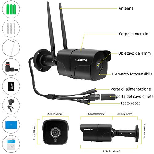 Telecamera Sorveglianza Esterno Wifi, SZSINOCAM Videocamere di Sorveglianza 1080P HD con Visione Notturna 30 Metri,Rilevazione del Movimento,Allarme di Posta,Audio Bidirezionale,IOS/Android/Windows