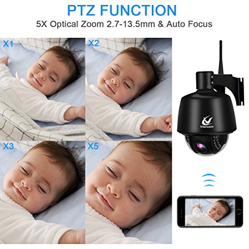 PTZ Telecamera di Sorveglianza IP, Vitorcam Telecamera Wi-fi Esterno, telecamera motorizzata ONVIF 960p Videosorveglianza P/T 5X Zoom