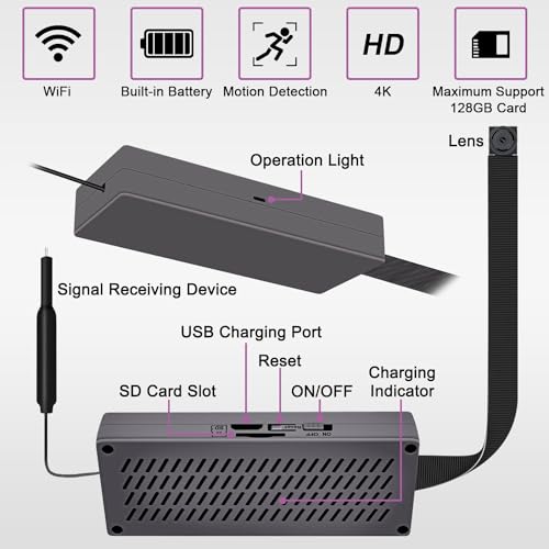 ★Registra video su scheda SD senza rete: questa mini telecamera nascosta incorpora una batteria da 800 mAh, può funzionare per 2,5 ore con la batteria. Basta inserire una scheda scheda di memoria (non inclusa) in questa mini telecamera spia, quindi accendere, quindi la mini telecamera di sicurezza nascosta registrerà automaticamente i video continuamente sulla scheda SD.
