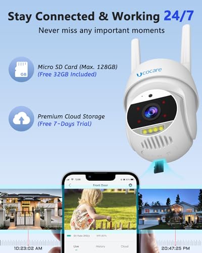 Monitoraggio 24/7 & Registrazione attivata dal movimento & Opzioni di archiviazione flessibili & Riproduzione video - La registrazione continua 24 ore su 24, 7 giorni su 7 e la registrazione attivata dal movimento possono rilevare e catturare in modo intelligente qualsiasi movimento notevole. Supporta l'archiviazione su scheda SD da 32 GB (Inclusa), Cloud e NVR. Puoi accedere e visualizzare facilmente le registrazioni video desiderate in qualsiasi momento e da qualsiasi luogo.