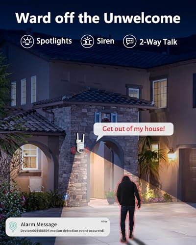 Riduci i falsi allarmi & Allarme sonoro e luminoso attivato dal movimento & Notifica istantanea dell'APP - È possibile personalizzare le impostazioni della sensibilità e della zona di rilevamento in base alle proprie preferenze, riducendo efficacemente i falsi allarmi. Inoltre, è dotato di avviso audio e luce stroboscopica, che dissuade chiunque si avvicini al raggio d'azione della telecamera e invia istantaneamente notifiche di avviso al