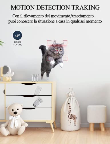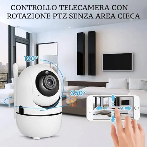✅ 1080P VISIONE NOTTURNA & VISTA PANORAMICA A 360°: Questa telecamera wi-fi ha l'obiettivo della visione notturna infrarossa e le immagini saranno ad alta risoluzione in 1080P HD . Grazie alla copertura del campo visivo orizzontale di 355° e rotazione verticale di 85°, crea una copertura di 360°. Possiamo posizionarla dove vogliamo e visualizzare l'intera stanza.