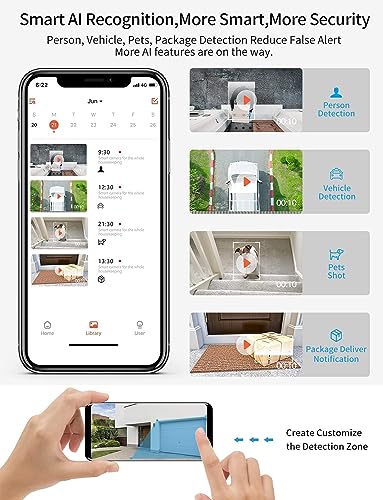 【Riconoscimento AI intelligente aggiornato】 La telecamera esterna wifi G-Homa riconosce persone/animali/veicoli attraverso algoritmi AI e supporta la creazione di 3 aree di rilevamento personalizzate per ricordarti quando viene rilevato un movimento nell'area designata. Ricevi solo le notifiche istantanee che ti interessano e riduci i fastidiosi falsi positivi. Questo servizio a valore aggiunto AI è selezionato dall'acquirente.