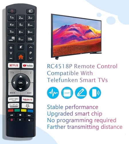 Telecomando originale RC4518P sostituisce RC4318P RC4318 compatibile con TV LED LCD Telefunken D32F554M1CW D32H125N2V2 Smart Ultra HD LED LCD