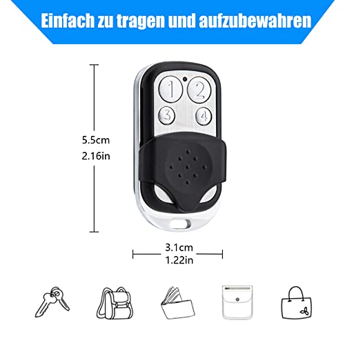 Tecnologia HF: il design del coperchio scorrevole impedisce che i 4 tasti vengano schiacciati e sporchi accidentalmente. Ha le caratteristiche di 433,92 MHz Rolling Code, 4 pulsanti, che funzionano in modo indipendente e controllano più porte di garage.