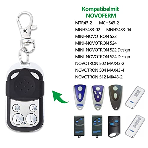 Telecomando di ricambio per porta del garage, 433,92 MHz, compatibile al 100% con NOVOFERM NOVOTRON 502 MAX43-2, 504 MAX43-4, 512 MIX43-2, MNHS433-02, MNHS433-04, 2 pezzi