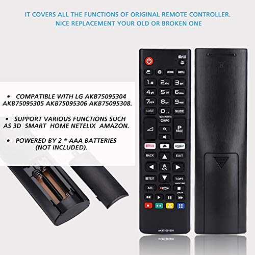 Telecomando di Ricambio per TV,Tangxi Telecomando Sostitutivo Ideale per TV,Controller Televisivo per LG AKB75095304 AKB75095305 AKB75095306 AKB75095308,8m Trasmissione,Prestazione Stabile,Nero