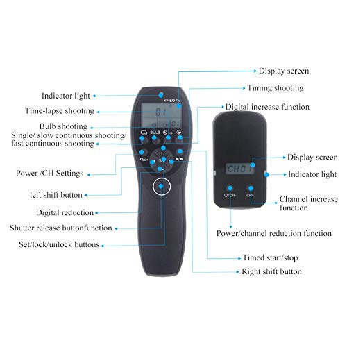 Adotta il sistema FSK e la frequenza globale libera a 2,4 GHz, più stabile e più affidabile. Con schermo LCD, molto comodo per ottenere informazioni precise sul canale e sulle modalità di scatto, facilità d'uso.