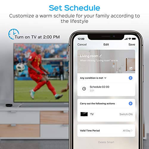 Imposta programma e timer: imposta timer per accendere/spegnere gli apparecchi in un momento specifico o personalizzare le scene con più dispositivi. Trasforma i tuoi dispositivi domestici di base in dispositivi intelligenti e rendi la vita più intelligente e comoda.
