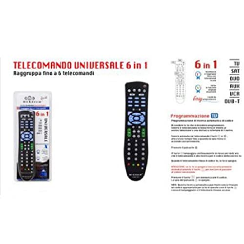 TELECOMANDO UNIVERSALE 6 IN 1 TV-DVD-VCR-SAT-DVB-T-AUX PILE AAA MAXTECH COM-T001
